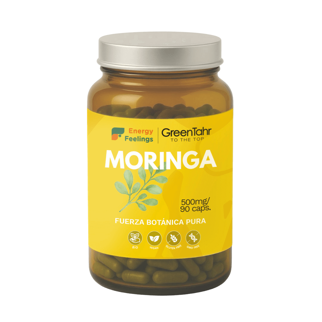 • Aporta 1.500 mg de extracto puro de moringa ecológica (Moringa oleifera) por dosis diaria (3 cápsulas), rica en vitaminas, minerales y antioxidantes naturales.